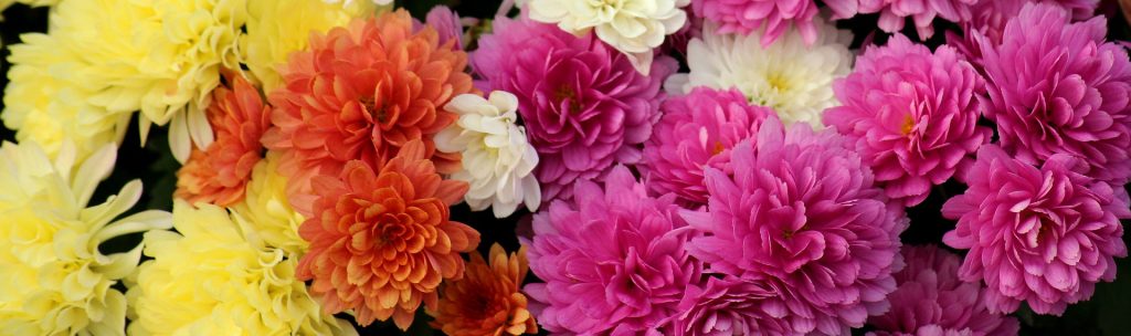 Flower Color: Chrysanthemum flowers bloom in shades of white, yellow, orange, lavender, purple, or red.